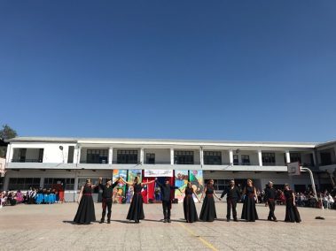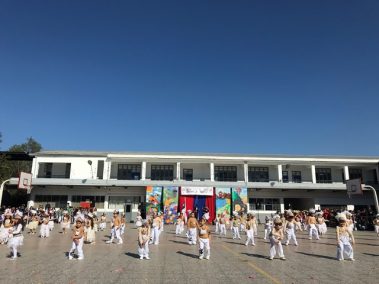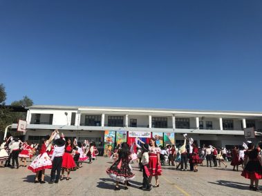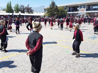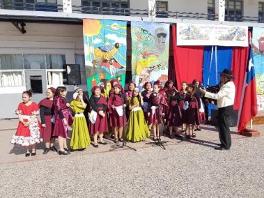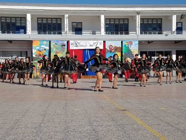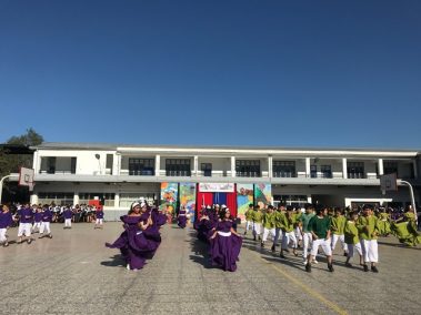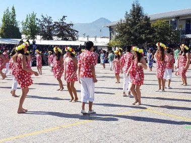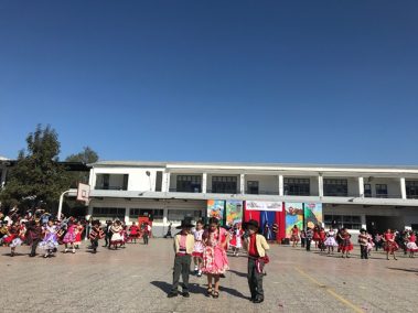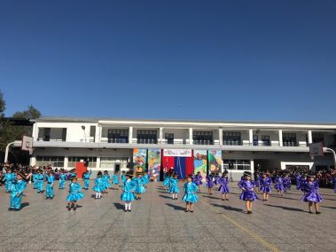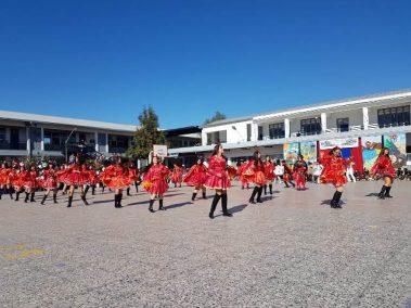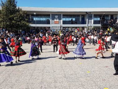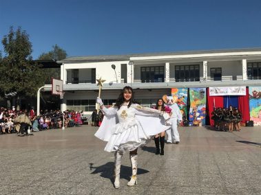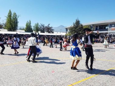 El 13 de septiembre nuestros estudiantes brillaron con sus bailes, que ese año se distribuyeron en la zona norte, centro y sur. Los cursos que bailaron en los carnavales del norte fueron el Prekínder y Kínder B con Soy Caporal, luego los cuartos básicos con Tumbe, a continuación los primeros medios con Baila Caporal y finalizaron la primera parte los cuartos medios con la Diablada. La zona centro comenzó con los bailes propios de la cultura Rapa Nui y se presentaron el Prekínder y Kínder A con Tamuré, luego los séptimos básicos con la fantasía Rapanui E’ruru era y los terceros medios bailaron un Hoko femenino y masculino y Ko Matou Nei. Luego, se desarrolló la Fiesta Huasa que comenzaron los segundos básicos con la Mazamorra y la Golpeadita, luego los terceros básicos con la Polka, a continuación los sextos con la Resfalosa y cerraron la zona central los segundos medios con nuestro baile nacional la Cueca. Los octavos básicos abrieron los bailes de la zona sur con La minga de Chiloé, luego los quintos básicos con Rin con órdenes y chocolate y finalizaron los primeros básicos con Trastrasera y Pericona. La apertura de la Gala estuvo a cargo de la alumna de IV°B Constanza García, los coros de básica y media también estuvieron presentes en nuestra celebración patria, los profesores prepararon el baile Mapuche Somos gente de la tierra y finalizó nuestra fiesta la actuación de un tradicional Chinchinero.